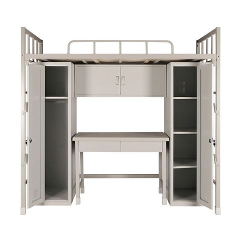 เตียงเหล็กสองชั้นดีไซน์ทันสมัยพร้อมด้านสูงและต่ำสำหรับหอพักเตียงเดี่ยวตู้เก็บไม้โต๊ะอ่านหนังสือสำหรับห้องนอน